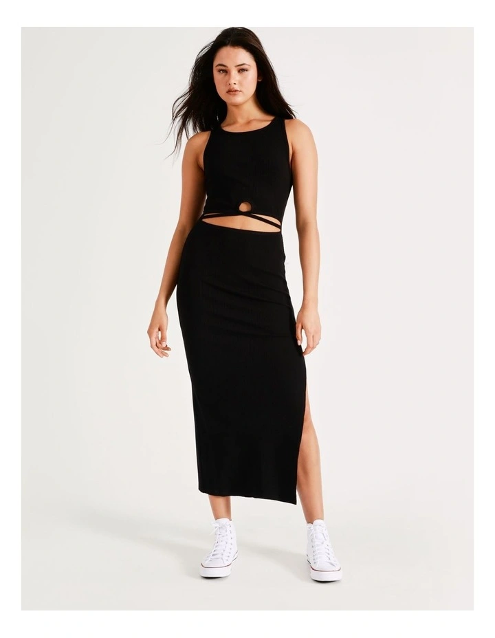 Miss Shop Cut Out Rib Midi Dress In Black Myer